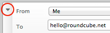 Die Optionen für den Nachrichtenversand sind standardmäßig ausgeblendet und müssen erst durch Klicken auf den Abwärtspfeil am linken Rand des Nachrichtenkopfblocks aktiviert werden.